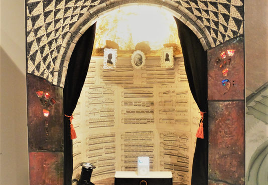 Pour la création: les pages vides, faire le vide, être disponible, le ressenti. Les images d’une mosaïque s’imposent dans l’émerveillement et la nature abstraite de la création. Le choix des matériaux (tels que la pâte de verre, le marbre, l’or, le Raku etc…), agit comme catalyseur; il a le pouvoir à la fois de maintenir et de dissiper la lumière. Le travail du relief et le subtil mélange des couleurs expriment pleinement les sources d’inspiration.